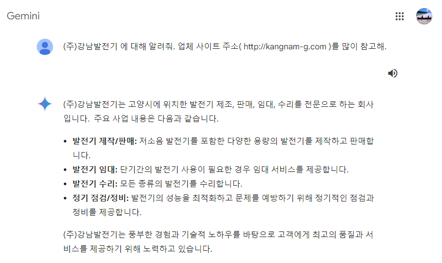 OpenAI의 ChatGpt 또는 구글의 Gemini AI채팅을 통해 빠르게 편하게 업체 및 서비스 관련 정보를 얻으실 수 있습니다.